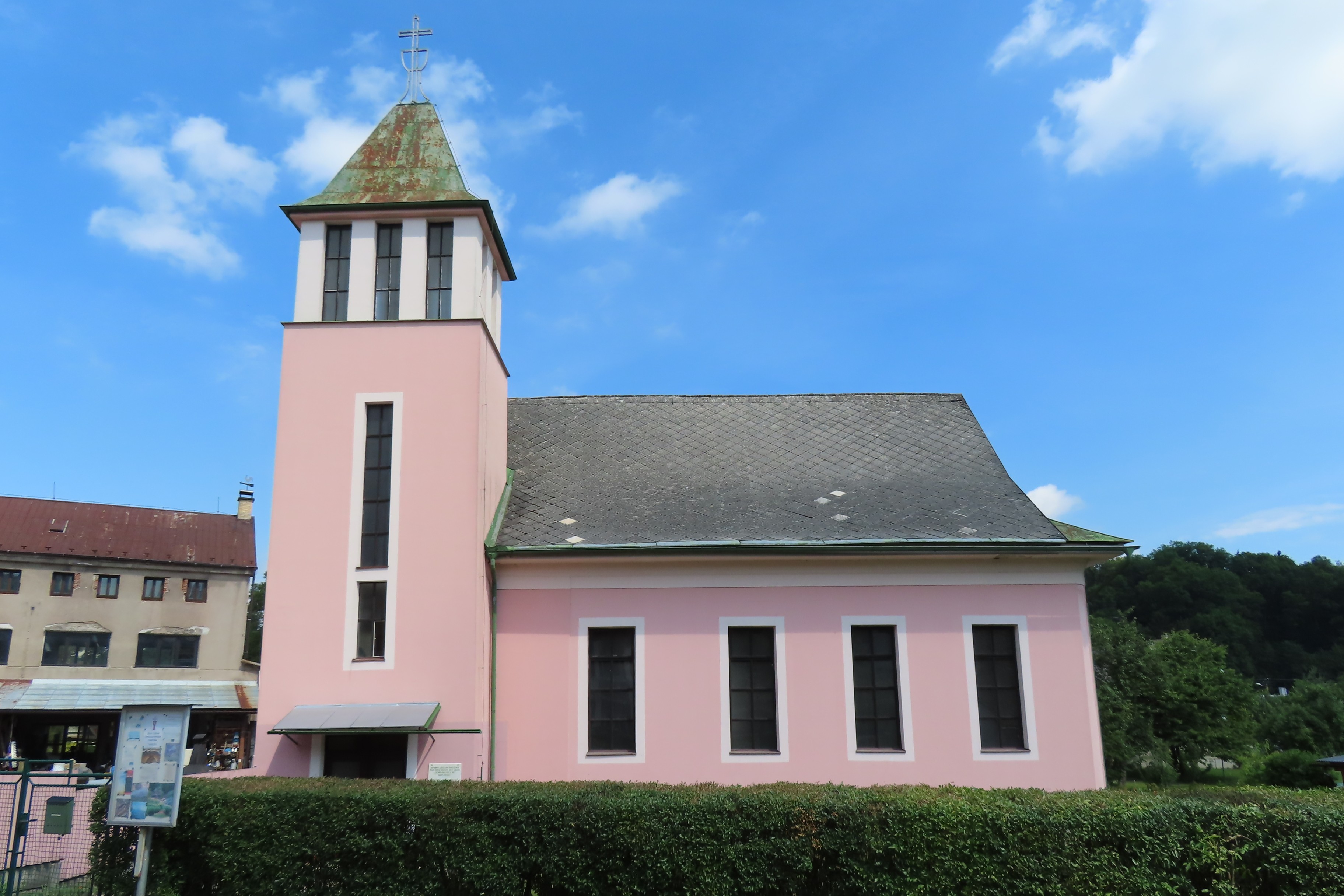 Bývalá synagoga, dnes sloužící jako modlitebna Církve československé husitské, byla vystavěna v letech 1810–11 na místě starší modlitebny, která vyhořela v roce 1810. V letech 1860, 1883 a 1930 byla stavebně upravována. Pravidelné bohoslužby se zde konaly až do začátku 2. světové války. Během války budova sloužila jako skladiště obilí.